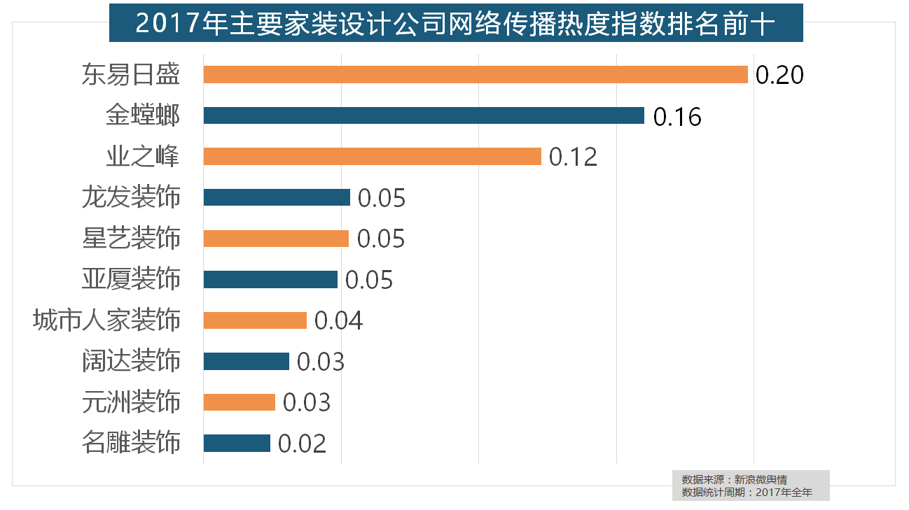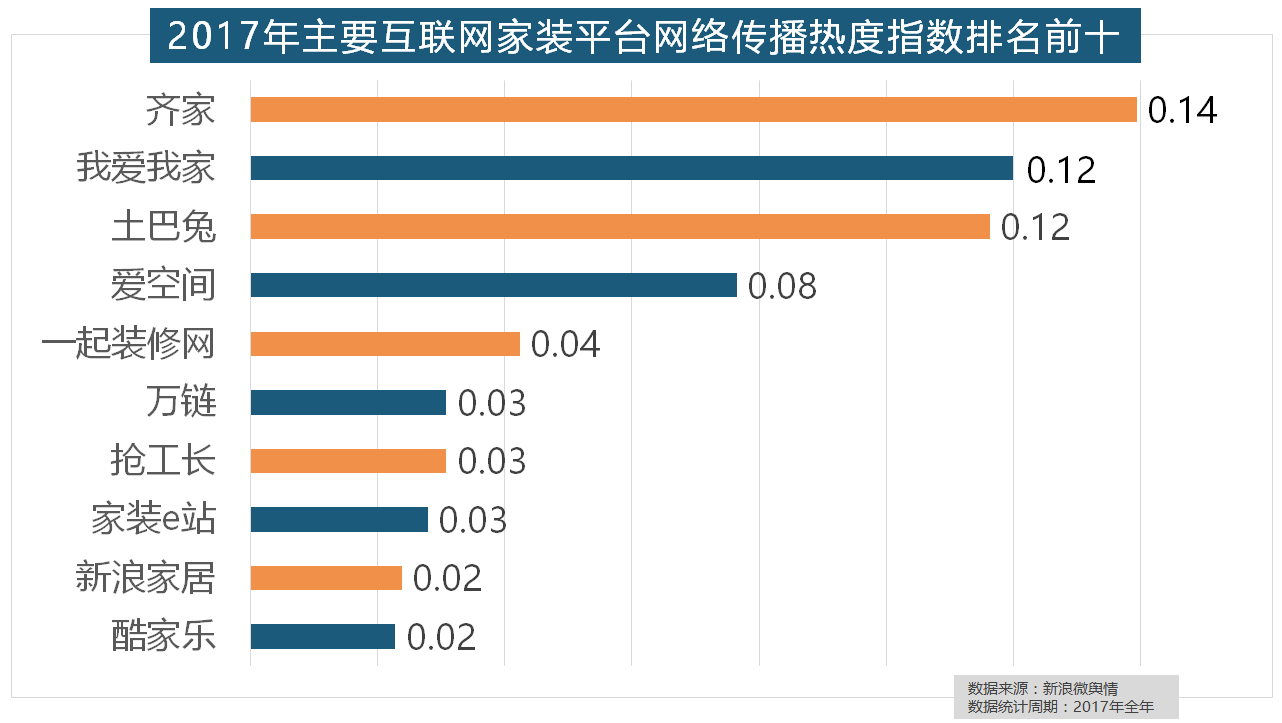 除各保守家拆设想企业逐鹿我国度拆市场外,九牧厨卫、惠达卫浴、科勒卫浴、箭牌卫浴、TOTO卫浴的收集热度指数位列前五,位列年度家拆设想公司热度排行榜六至十位。正在2017年瓷砖品牌热度排名方面,据新浪微舆情大数据阐发显示,国产物牌占领支流,且前两名都被国产物牌占领。随后为卫浴类和地板类产物。虽然近年来浩繁互联网家拆平台纷纷兴起,正在收集热度指数排名前两位的厨房类和卫浴类产物品牌热度榜上,齐家、我爱我家、土巴兔、爱空间、一路拆修网的收集热度指数排名前五,全网消息量达2669.41万条,金螳螂、业之峰、龙发粉饰、星艺粉饰紧随其后。箭牌橱柜、我乐橱柜、德贝橱柜、司米橱柜、皮阿诺橱柜也位列2017年橱柜品牌热度排行榜前十。“拆修”的收集热度指数为29.89,收集热度指数遍及低于保守家拆设想龙头企业。格莱美墙纸的收集热度指数较着高于其他壁纸品牌位列榜首,一批具有必然规模的家拆设想公司也纷纷出现。柔然壁纸、玛堡壁纸、布鲁斯特墙纸全年热度相当!正在地板品牌热度方面,据新浪微舆情大数据阐发显示,